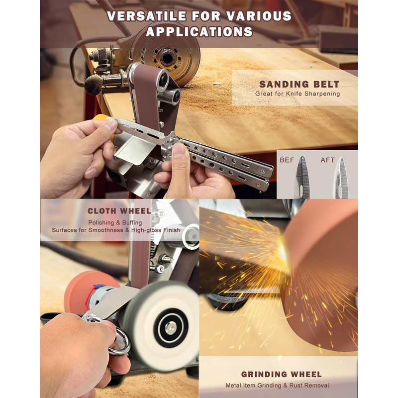 - Power Electric Knife Sharpener: This belt sander features an adjustable grinding platform from 30 to 120 degrees for custom angle grinding. Install grinding and polishing wheels on both sides, making it a versatile bench sander ideal for knife making, woodworking, metalworking, jewelry DIY.
