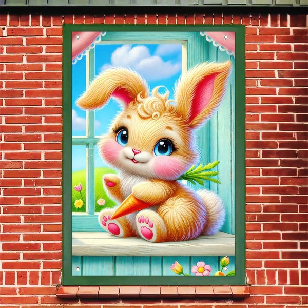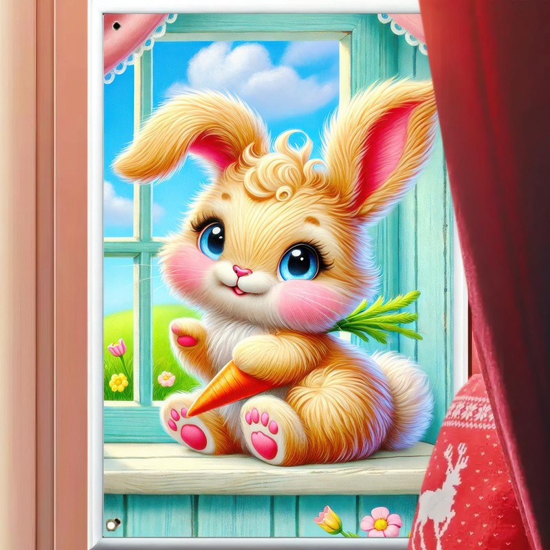 - Cute Bunny Design: This window cover showcases a charming bunny with a playful expression, holding a carrot, perfect for spring and Easter decor.The playful and festive design brings a cheerful touch to your home, setting the perfect holiday mood.