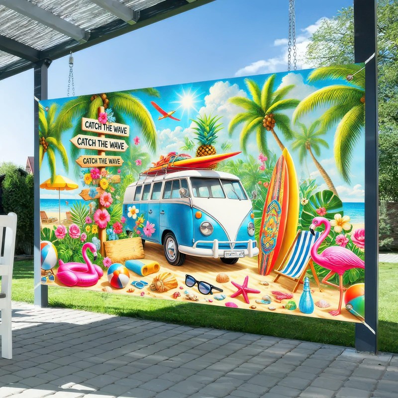 - Polyester Material:Summer wall hanging decor banner is made from polyester, the banner offers a smooth and durable surface for the detailed print. The material is soft enough to hang gracefully, yet firm enough to maintain the sharpness of the vivid beach - themed graphics, from the van's details to the patterns on the surfboards.