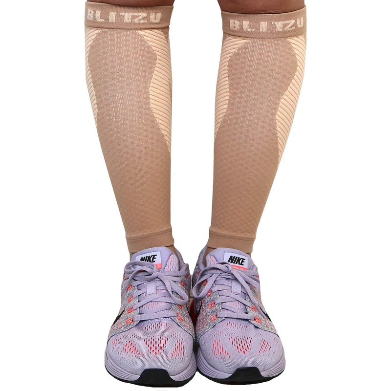 BLITZU Calf Compression Sleeves For Women & Men Leg Compression Socks for Runners, Shin Splint, Recovery from Injury & Pain Relief Great for Running, Maternity, Travel, Nurses Nude L-XL
