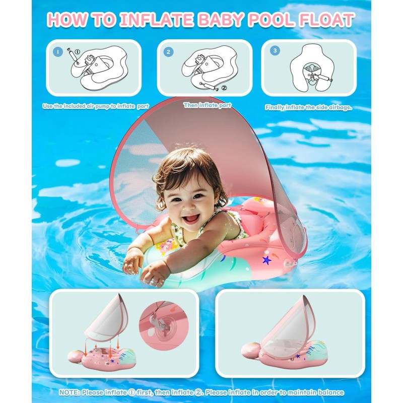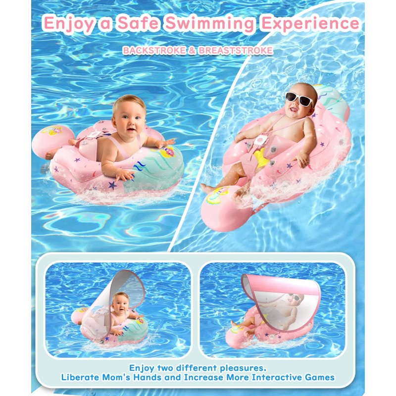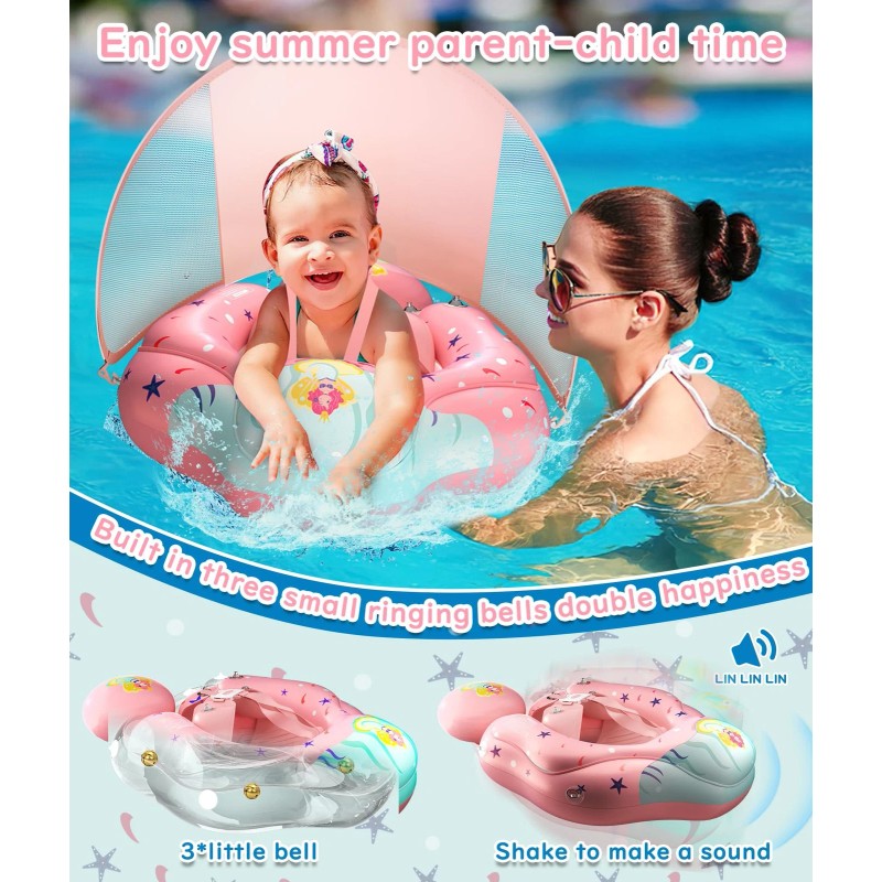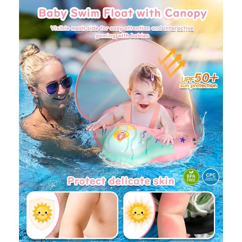 Baby Swimming Pool Floats Providing sunshade UPF50+ UV function to better protect the skin of infants, Breathable Mesh sides provide clear visibility to help baby and parents interact while swimming,Never worry about can't go to the beach or pool with your kids on hot summer days
