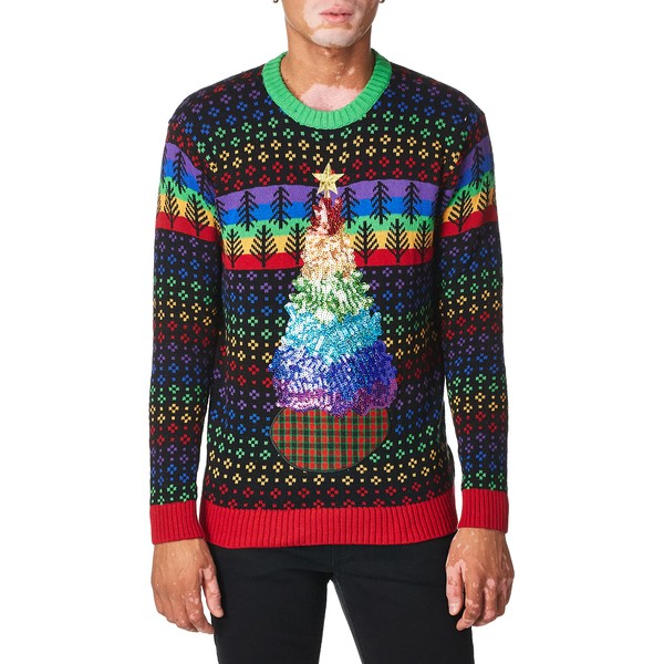 Blizzard Bay Men's Rainbow Xmas Tree Sweater, Black, Small