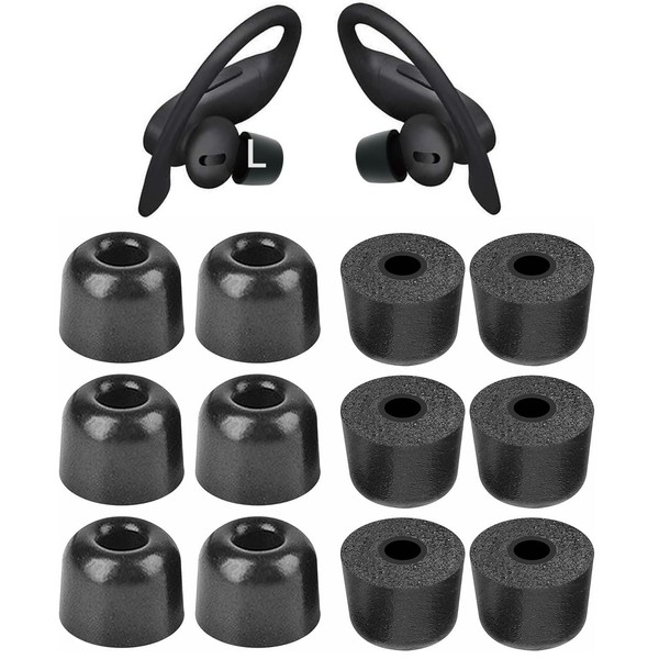 BLLQ Memory Foam Tips Compatible with Powerbeats Pro Replacement Ear Tips, Perfect Noise Cancellation, Fit in Case, Foam Tips 6 Pairs, Black, Large Size (515BL)