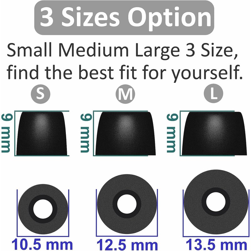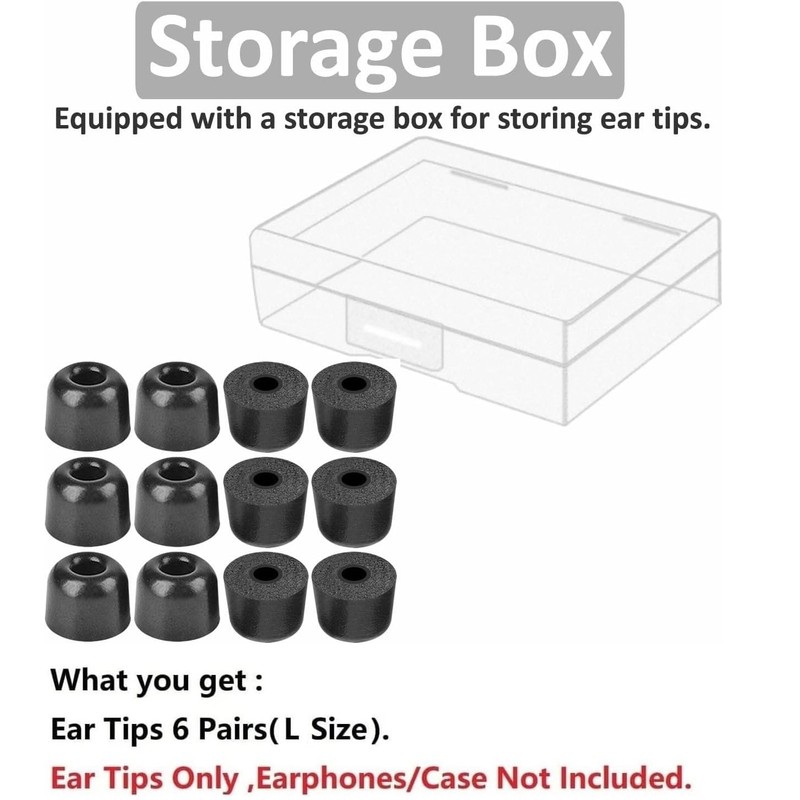 - Large Size 6 Pairs included : Package includes 6 Pairs of Memory foam tips(Black,L Size),Come with a little Storage Case.[Ear tips Only,Earphones/Charge Case Not included.]
