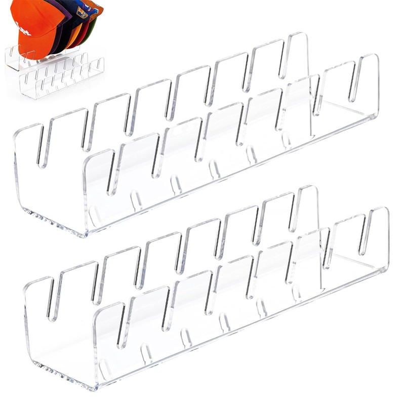 2 Pcs Baseball Cap Storage Hat Display Stand, No Install Acrylic Hat Organiser, Hat Racks for 14 Baseball Caps Display, Hat Holder for Home, Bedroom, Closet, Dresser, Office
