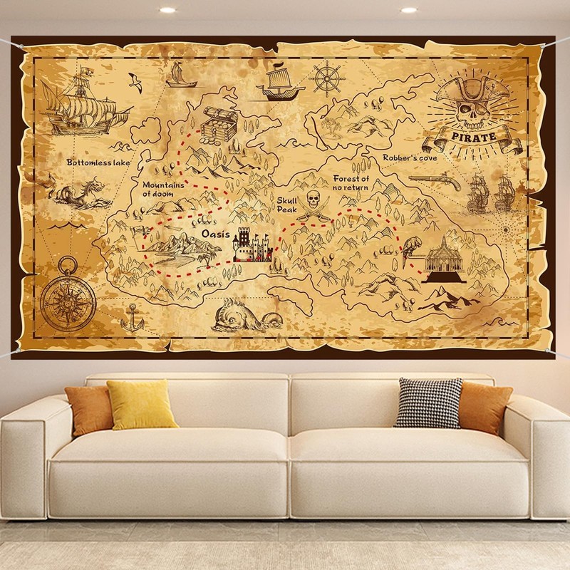 - 【Easy to Use】The four corners have copper ring buckles, which are convenient for hanging. Just fix the position of the nail and the map background can be hung up, suitable for pirate themed party indoor outdoor, leave a deep impression on your guests.