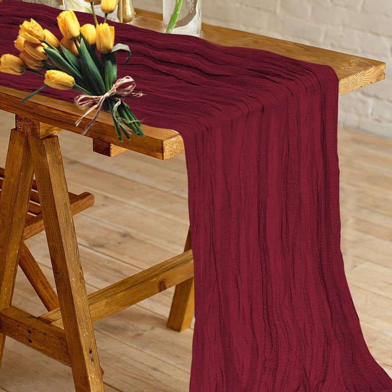 - 【Rustic Table Runner】The burgundy red cheesecloth is delicate and flowy, comes with romantic style. Rustic table runner with wrinkled texture gracefully across your table, bringing a subtle touch of elegance along with it.