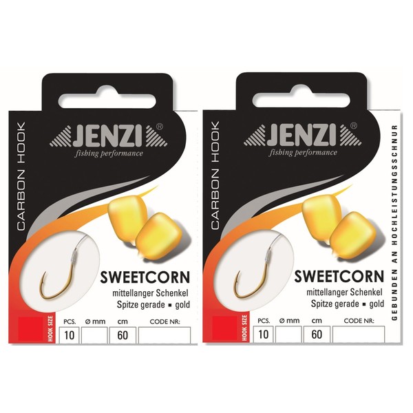 blntackle76 Set: 2 packs of tied corn hooks carp by Jenzi, all-round hooks, (20 pieces) on mono line 60 cm, hook size 6, 8, 10, 12 leaders ready + free Petri Heil! sticker (hook size 8)