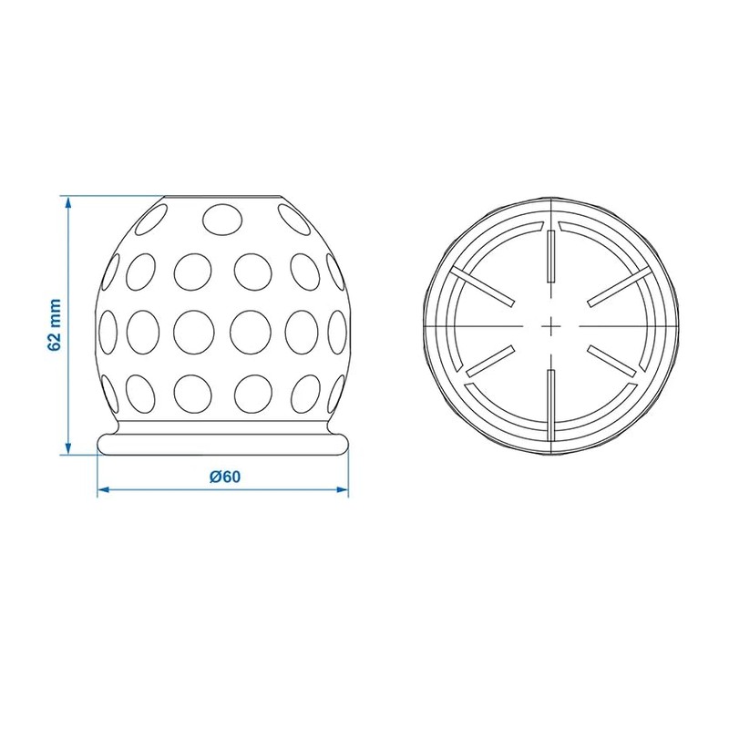 - Coupling cap made of flexible plastic with practical retaining ring for 50 mm ball head coupling, colour and type as selected