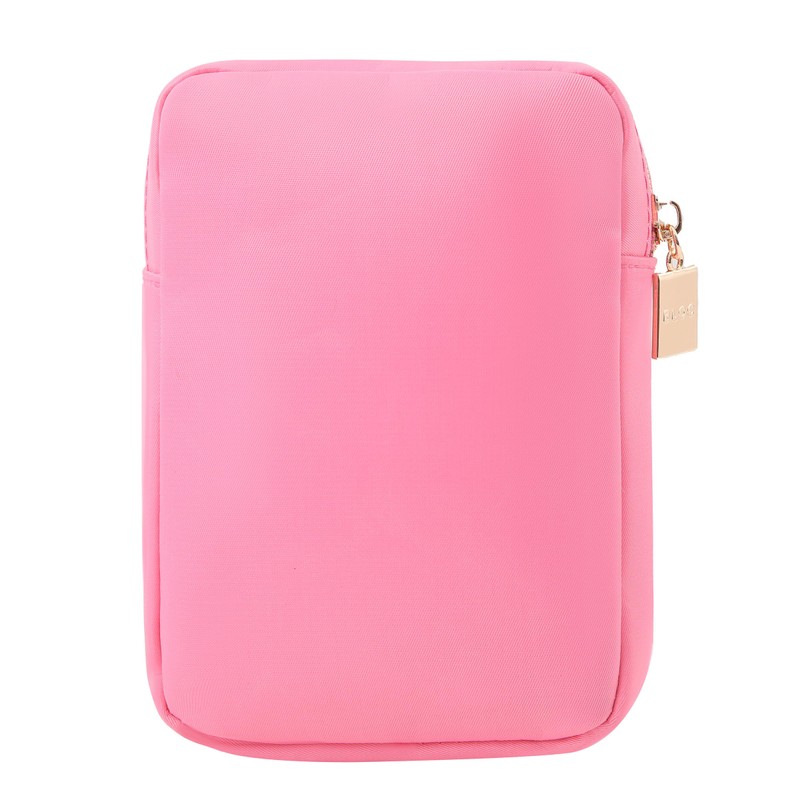 - Unique, Fun, Fashionable Design: The Bloc Mini Beauty Bag is the perfect mini makeup bag for travel or home, and can be used for your cosmetics and toiletries. The bag is made of a water-resistant, durable nylon, gold tone metal hardware, and has an exclusive chenille patch for the ultimate in cute designer fashion. This make up pouch is ideal for travel, but small enough to be carried in your purse as your everyday cosmetics organizer.