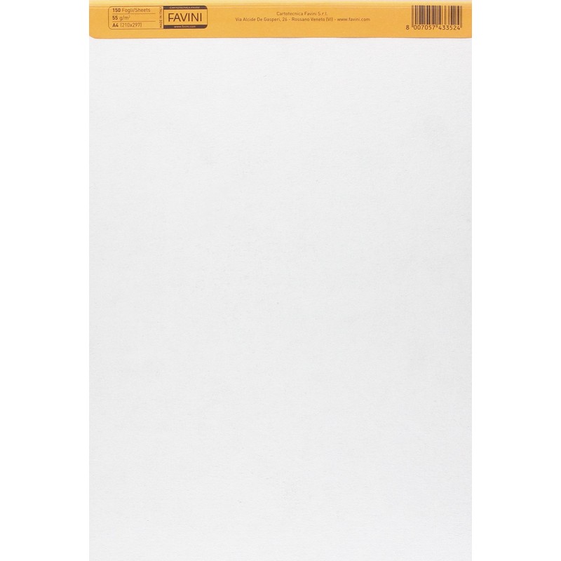 Confezione da 5 pezzi. blocco schizzastrappa bianco 21x29,7cm 150fg 50gr favini blocco in leggerissima carta naturale, particolarmente adatto a grafici, stilisti e creatori di moda. blocco collato sul lato breve.