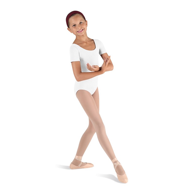 Girl's short sleeve leotard with scoop front and back neckline is the perfect choice for the young dancer.