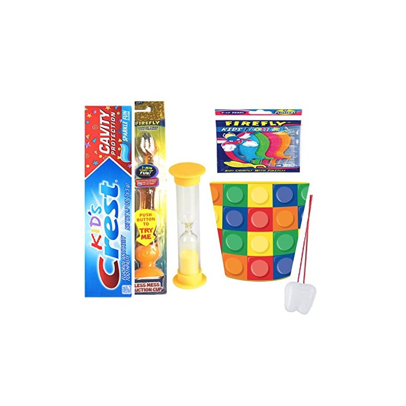 Block Inspired 4pcs Bright Smile Care Bundle Include Toothpaste, Flashing Light Toothbrush, Brushing Timer, Mouthwash Rinse Cup Tooth Necklace as Visual Aid Reminder