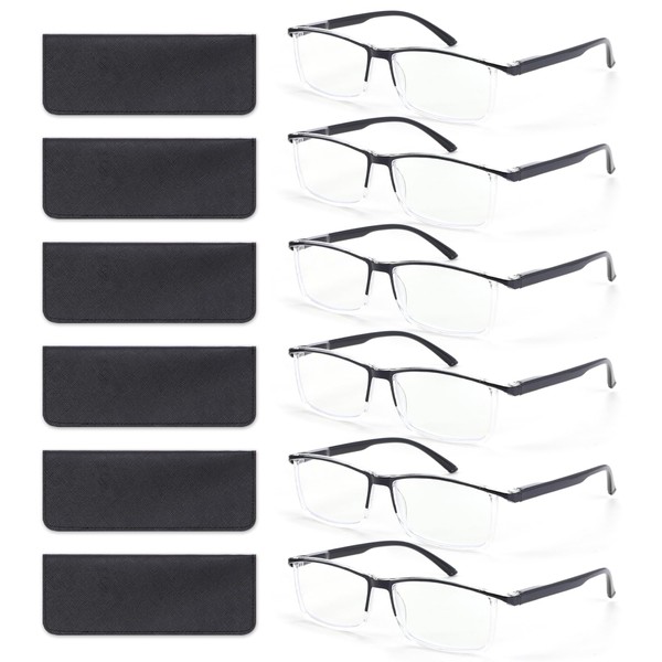 - 【Great Worth 6 Pack Reading Glasses Women Men】 - Designer glasses with stylish pouches - All eyes on classic square full frame, Never have to look for your glasses, Leave a pairs in purse, in the car, nightstand, coffee table. The fashion combination readers are the best gift for elders, You will receive reading glasses*6, Glasses Case*6 , and Microfiber glasses cleaning cloth*1