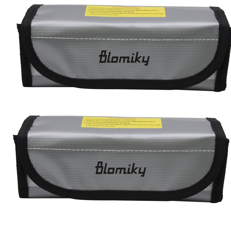 Blomiky 2 Pack 18.5 * 7.5 * 6cm Lipo Battery Fireproof Explosionproof Safe Bag Suitable for Li-ion Li-Po or Ni-CD Ni-MH Battery Charging and Storage/Lipo Case *2