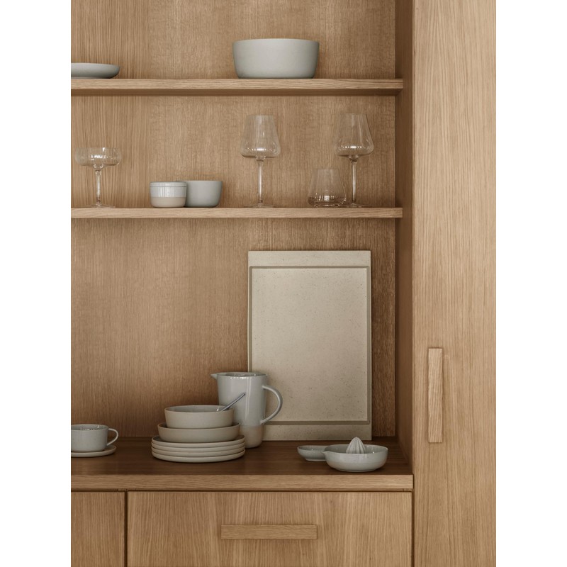 Ceramic Stoneware Sugar Container - SABLO was designed by Frederike Martens, a German industrial designer with emphasis on glass and ceramics. Frederike designed the SABLO line taking inspiration from the natural materials of sand, clay and water. The shapes are soft and inviting with pleasantly rounded edges and a slightly rough surface in some areas and glazed in others. SABLO stoneware is made from colored clay and a unique mix of quartz, minerals and oxide. Stoneware is defined as a group of ceramic products and is used to produce plates, dishes, cachepots and bowls, molded at very high temperatures using special casting techniques. The high temperature during the firing process ensure stoneware is more stable than clay and less translucent than porcelain. The colors, shapes, appearance of the glaze as well as the overall look depend on the firing temperature and time and may vary slightly from piece to piece - each piece is unique and may show individual structures and shades. The clay of SABLO is fired at a very high temperature, therefore doesn't require all over glazing. The textured unglazed portion is a soft beige, reminiscent of the natural sand and clay from which the piece is made.