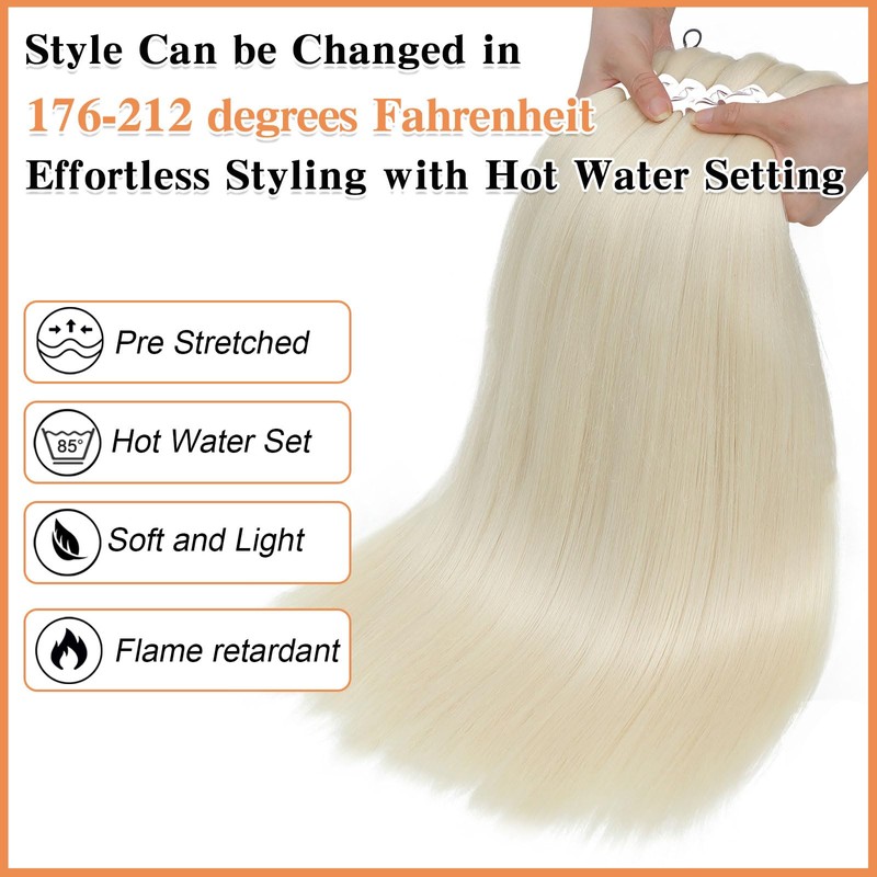 • 【Pre streched Braiding Hair Package: 】 The order includes 6 packs of 22inch blonde braiding hair pre stretched and 10 pcs rings; other 12-32 inch prestreched braiding hair are available, rich color series braiding hair for your multiple needs, get all your ideal hair so easy!