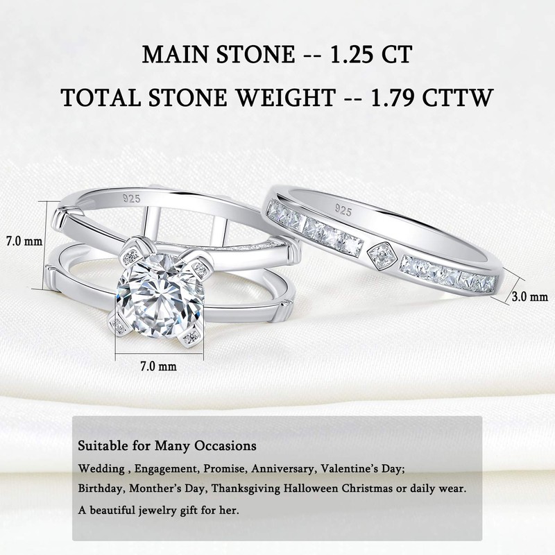 - ❤ Trendy Style - Primary Stone: 1pc/1.25ct; Side Stone: 41pcs/0.53ct. This interchangeable wedding ring set features a round cz stone and rows of smaller cz stones set in engagement ring. Additional cubic zirconia stones are set into the 925 sterling silver matching wedding bands.