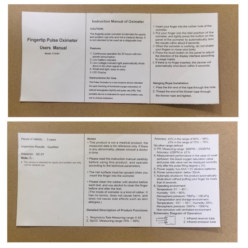 - **Environment Tips & Usage Limits**: This oxygen monitor and blood oxygen saturation monitor works best away from strong light (use a cover if needed) . Note: For aviation/sports, not medical use.