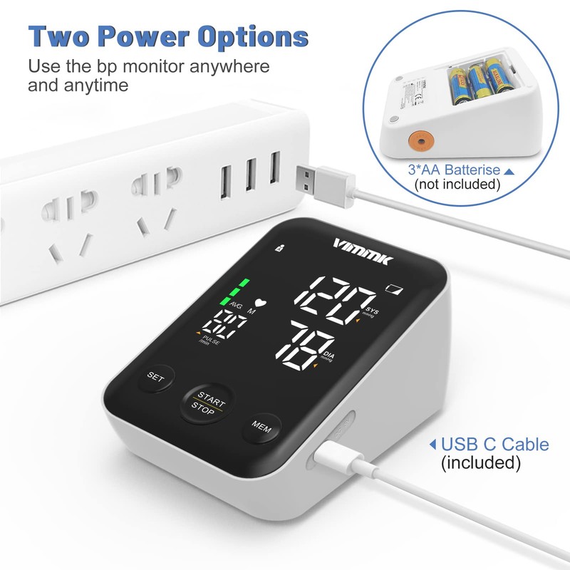 - ✔️【One Package Contains Everything You Need】Powered up via Type-C cable (included) when connecting to your USB socket/power bank/computer, or 3 AA batteries (NOT included). You will get 1 x Blood pressure monitor, 1 x Large Cuff, 1 x Type-C cable, 1 x Users manual,1 x Carrying Bag. It is easy to carry around. Our professional team always standby to answer your question and problems.