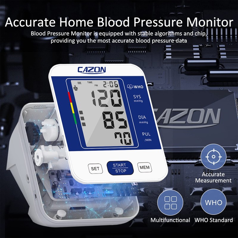 Blood Pressure Monitor for Home Use, CAZON Blood Pressure Machine Upper Arm Accurate BP Monitor Fully Automatic Irregular Heartbeat & Pulse Rate Monitoring Meter, 2X99 Memory, Adjustable Cuff 22-40cm