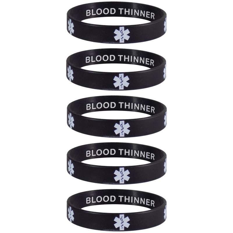 - Purchase our "BLOOD THINNER" Medical Alert ID Privacy Enhanced Silicone Bracelets 5 Pack today and take the first step towards a safer tomorrow!