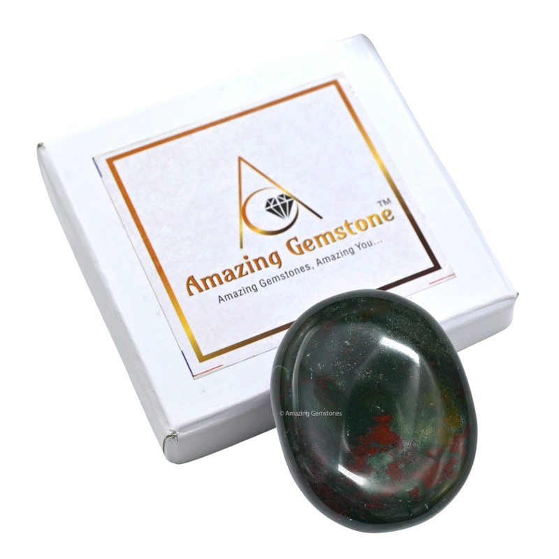 Bloodstone Palm Stone - Massage Worry Stone for Natural Body Chakra Balancing, Reiki Healing and Crystal Grid