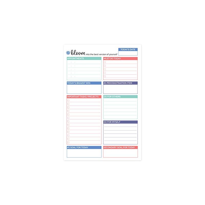 - Back side of pad features spaces to track phone calls to make, people to email, what to delegate, what to stop doing, and your plans for the night