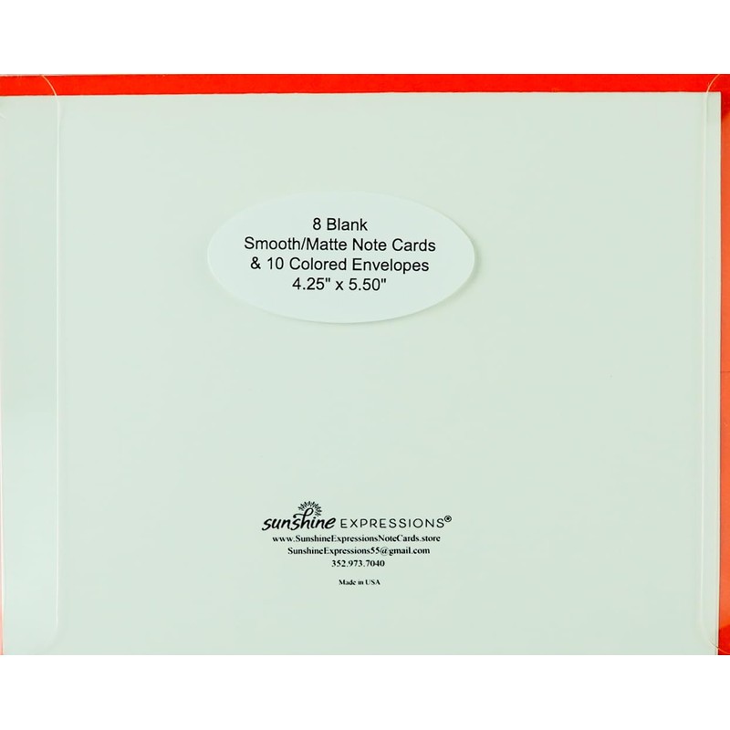 - BRIGHTEN THEIR DAY: By using Sunshine Expressions blooming flower note cards you get high-end note cards. Beautiful and elegant, our blank note cards leave a lasting impression and make sure the message is delivered right to the heart! Our note cards can be framed as a unique gift. Your order comes in a pack of 8 note cards with 10 color coordinated envelopes.