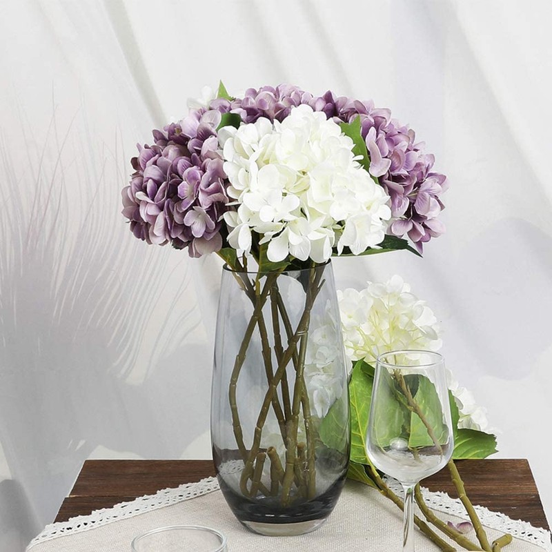Blooming Paradise Artificial Fake Flowers Plants Silk Hydrangea 1 Flower Head Arrangements Wedding Bouquets Decorations Plastic Floral Table Centerpieces Home Kitchen Garden (Light Purple)