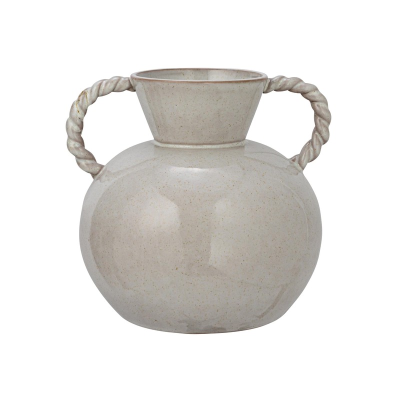 Bloomingville 9.25 Inches Stoneware Twisted Handles and Reactive Glaze, Cream Color Vase