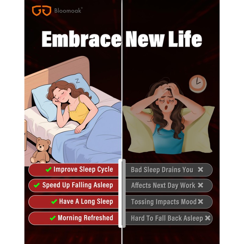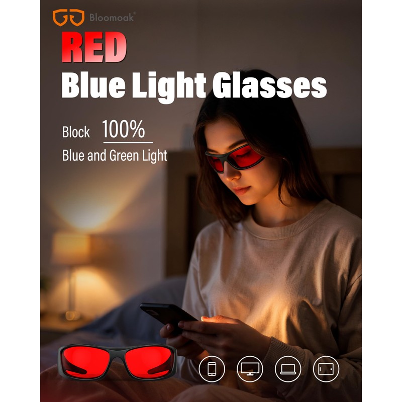 - 【Verbessert den Schlaf-Wach-Rhythmus】Tragen Sie die Bloomoak Dream Controller-Rotbrille, um die Melatoninproduktion zu fördern und Ihren Schlaf-Wach-Rhythmus zu synchronisieren. Ideal für Reisende und Schichtarbeiter – sie ermöglicht erholsamen Tagesschlaf und hilft Ihnen, Jetlag mühelos zu überwinden. Schlafen Sie überall ruhig ein!