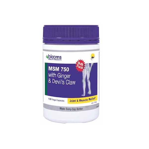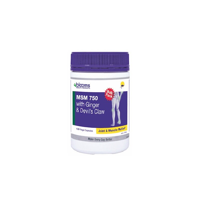 Blooms MSM 750 with Ginger & Devil’s Claw may assist in the management of pain and inflammation associated with arthritis or exercise, and may provide temporary relief to sore joints and muscles.