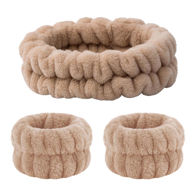 BLOOPIC 洗顔用 手首バンド リストバンド アームバンド 3枚セット 吸水 速乾 伸縮性あり 無地 ふわふわ 柔らかい コーラルフリース素材 肌触りが良い 洗顔・手洗・シャワー・化粧水に・SPA 使用します 手首 バンド (カーキ)