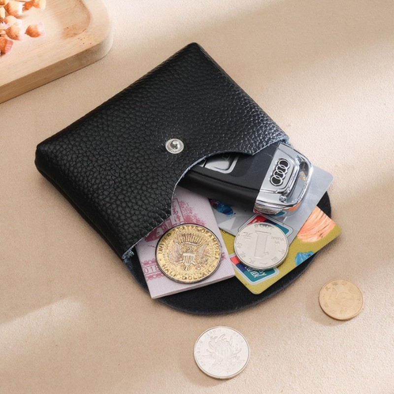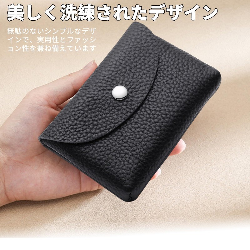BLOOPIC Mini Wallet, Compact, Genuine Leather, Popular, Stylish, Soft to the Touch, Authentic, Anti-Theft, Can Store Coins, Car Keys, Cards, Cosmetics, etc, black
