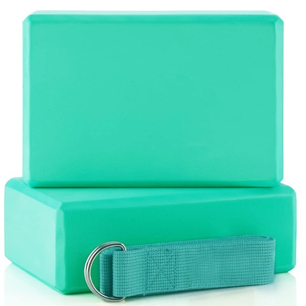 Bloques de Yoga de Alta Densidad 9 "x6 "x4", Bloque Para Yoga o Pilates, Yoga Blocks con Correa para Apoyar y Profundizar Posturas, Superficie Ligera, Resistente al Olor y Antideslizante para Yoga, Pilates y Meditación, Verde
