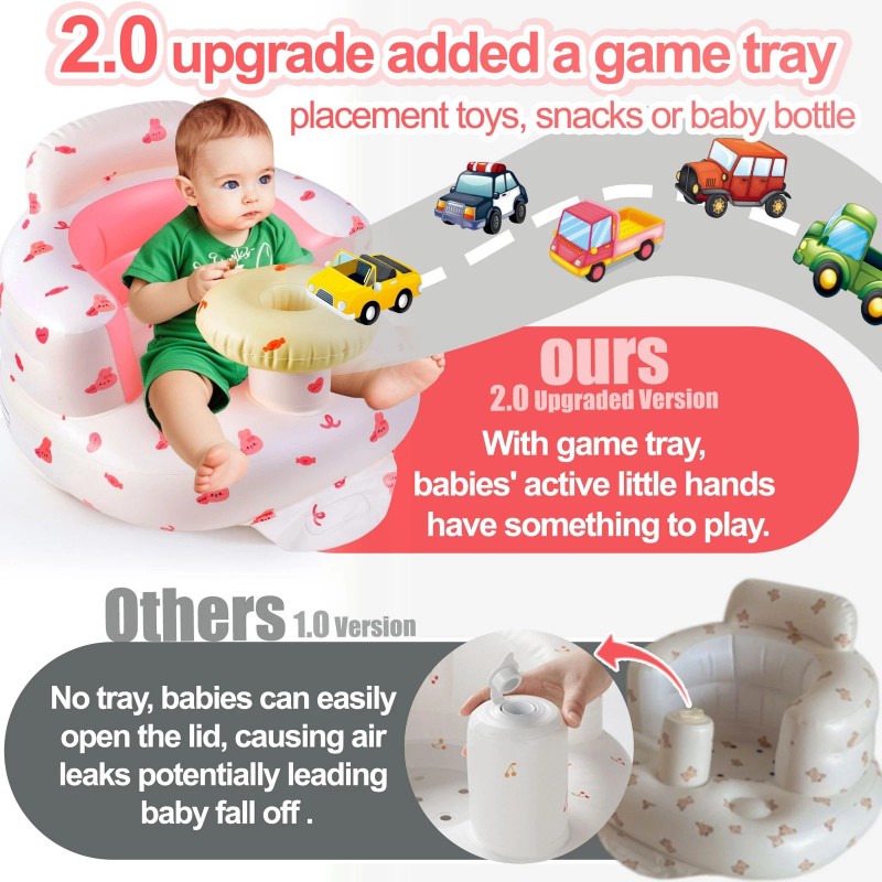 【2.0 upgrade added a game tray】:Blorybim inflatable Baby Seat With game tray, babies' active little hands have something to play.placement toys, snacks or baby bottle, sit me up floor seat for baby, baby seats for infants for sitting up inflatable baby chair inflatable baby seat for babies 3-36 months.
