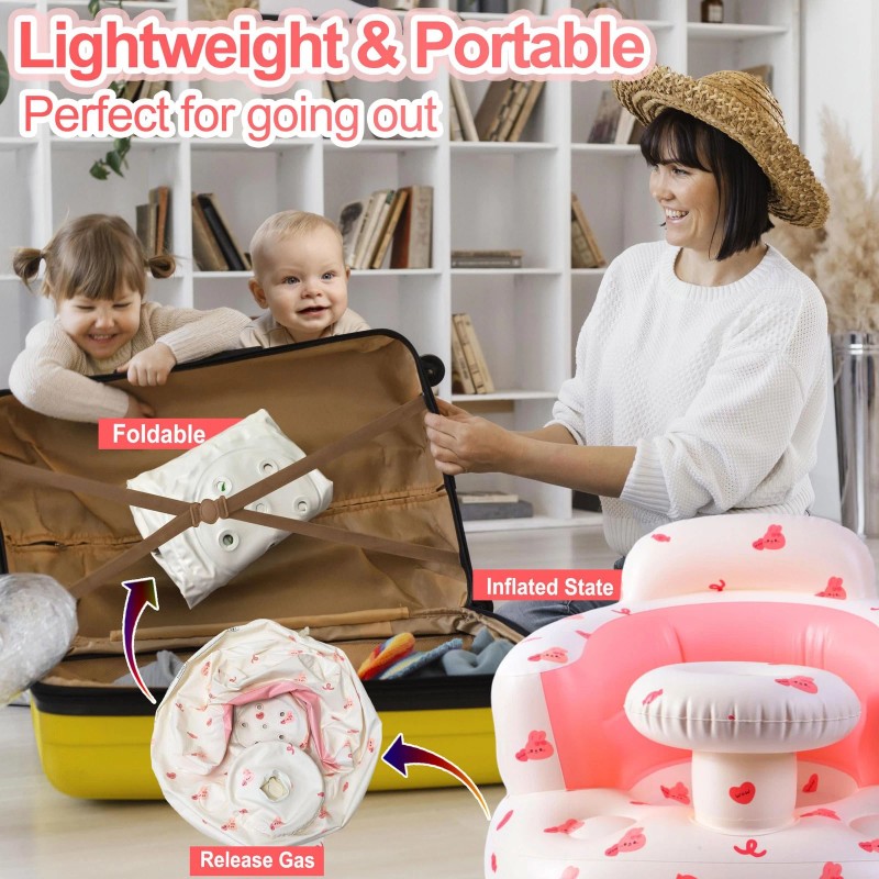 【Comfortable & Supportive 】:Blorybim Inflatable Baby Seat provides good back support, helping your baby sit up comfortably without slouching. It’s especially useful for babies learning to sit independently. infant chairs for sitting up 0-6 months 3-12 months 3-36 months