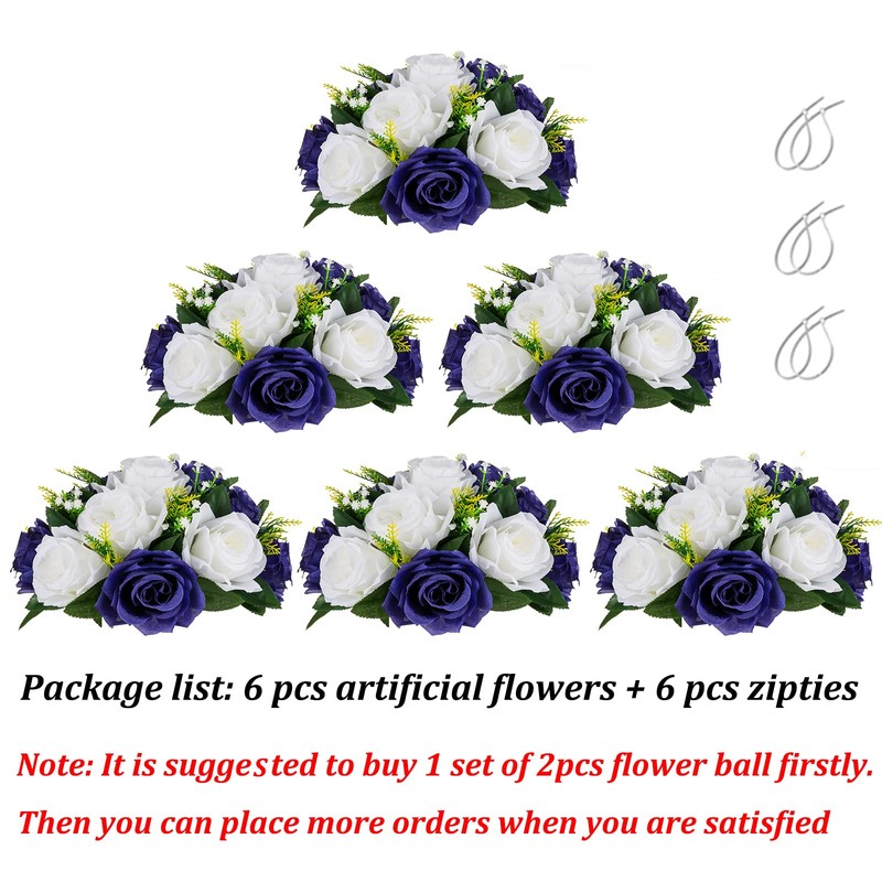 BLOSMON Flower Balls Wedding Rose Centerpieces 6 Pcs Fake Flowers Purple Navy Blue&White Kissing Balls Decor Artificial Floral Arrangements Flower Bouquet of Roses Home Party Table DIY Decorations