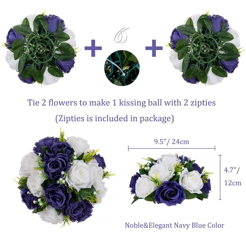 - [Multiple Decorations]: Decorate your home or office or improving the living atmosphere with our flower arrangement in the shape of half ball (9.5"W x 4.75"H ) or a perfect ball, which you can also easily combine them with our free zip to make . Our flower ball has a patented base with fake flowers of diameter of 10 cm, which is a perfect size for most stands and vases. Moreover, our flower balls can also play the roles of centerpieces in tables.