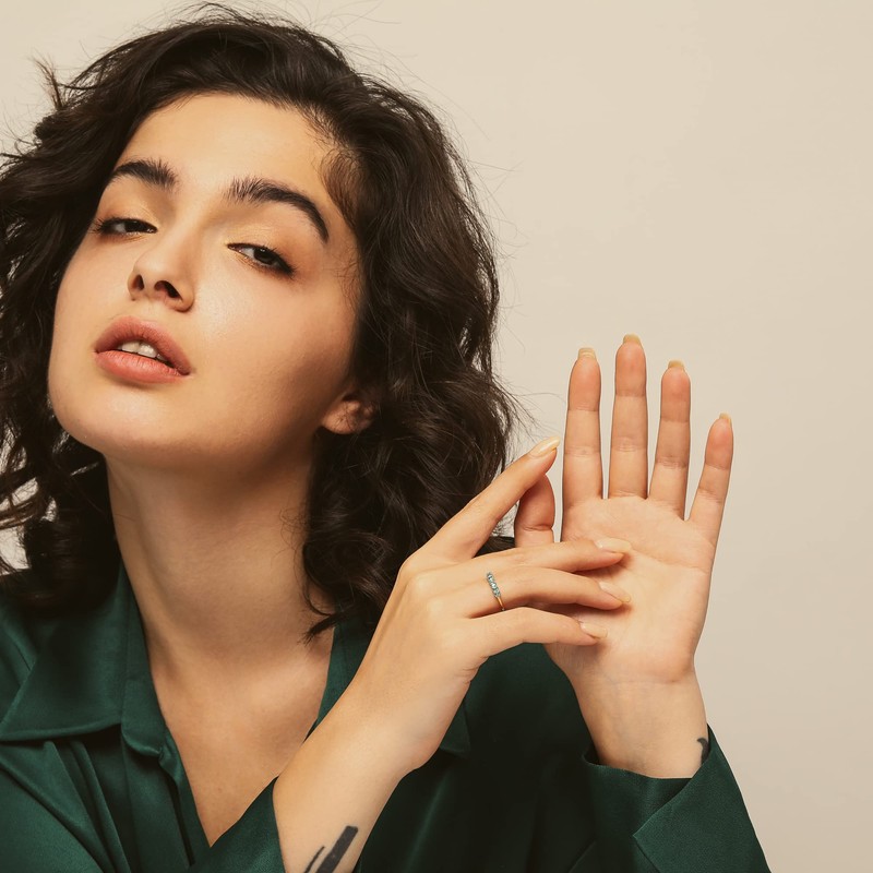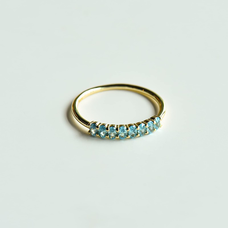 BLOSSOM & HUE Oval Cluster Stackable Ring | Size 6 | Minimalist Blue Gemstone | 18K Gold Plated .925 Sterling Silver | Small Stacking Ring | Gift for Her