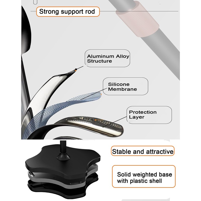 - WORK STABLY: The base of this stand is weighted circular cast iron to provide better stability, with plastic casing and no-slip eva foam to protcet the floor. And the main support structure is carbon steel pipe. Super tough, no shaking, high load.