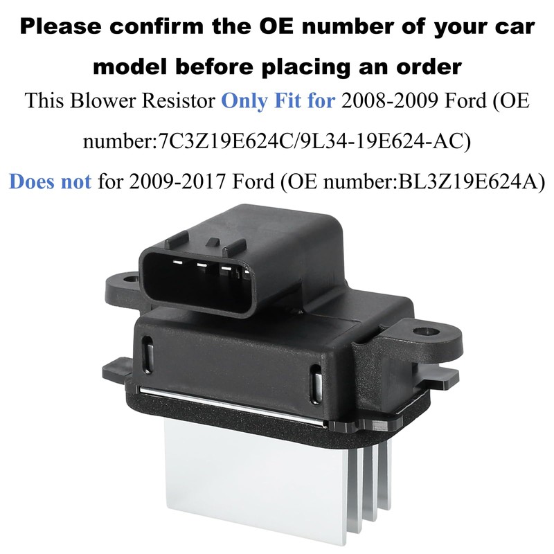 - Relaces Part Numbers - 7C3Z-19E624-C 9L3Z-19E624-B 9L34-19E624-AC, perfect replace the Blower Motor Resistor on your Ford and Lincoln Vehicles, installation can be completed under 30 minutes and you can save hundreds dollars by doing this repair yourself.