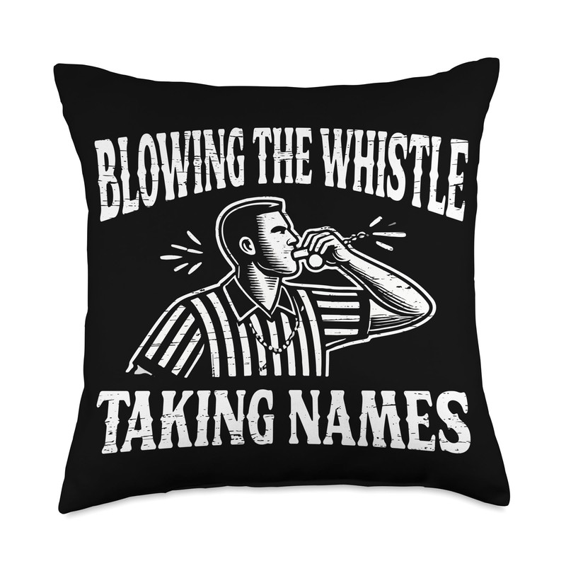 Blowing The Whistle Taking Names Funny Referee Throw Pillow