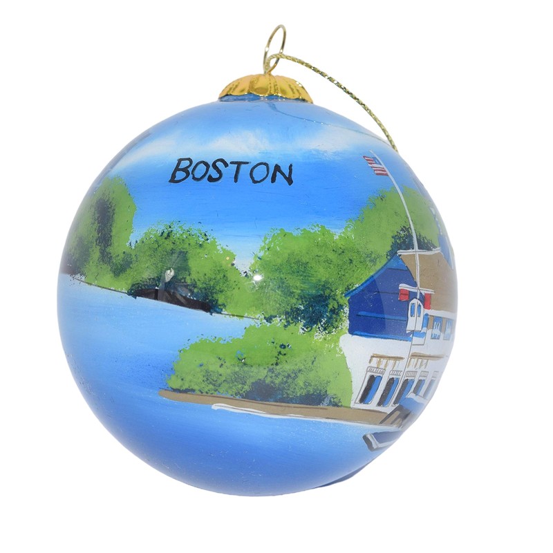 Blown Glass Christmas Ornament | Skyline View from Charles River Boston | Hand Painted Inside | Original Art | Includes Gift Box