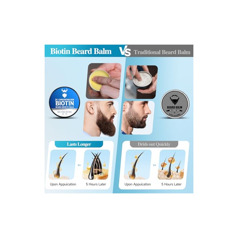 🌟 ⭐ Bálsamo para barba con biotina de concentración 2X para hombres y cera acondicionadora para barba - Elaborado con aceite de ricino, ingredientes naturales y orgánicos - Hidrata y espesa el crecimiento ⭐ 🌟