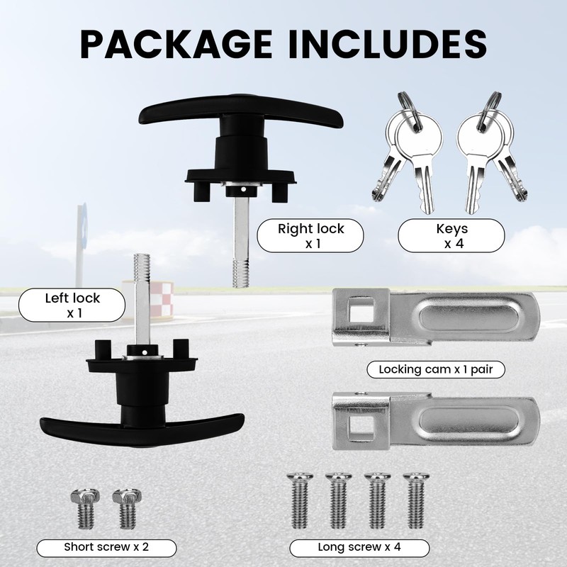 - 📦【Complete Replacement Kit】 Includes 2 locks (left & right), 4 screws, 4 keys, and pre-installed cam locks—everything for a quick camper lock replacement.