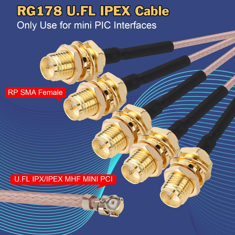 - Mini PCI to RP-SMA female RG178 WiFi Antenna Adapter Cable, Made of RG178 low loss coaxial cable with good conductivity and signal transmission, length 12" 30cm 5pcs pack, you can use it completely or spare it.