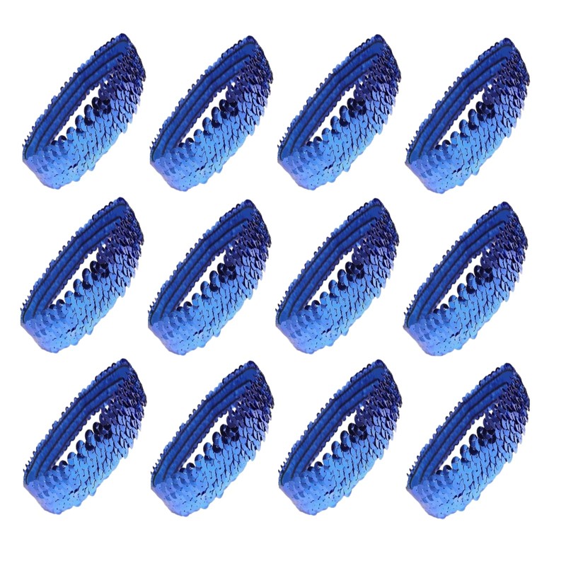 Blue - 12 1" Stretch Sequin Headbands Team Sets Softball Dance Sports Wholesale