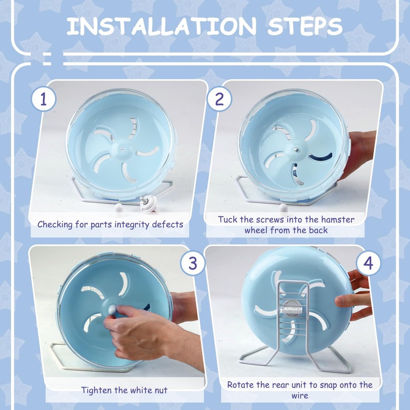- Easy Assembly: This small animal exercise wheel is easy to assemble and can also be mounted on side of a cage. It not only enhances your pet’s environment but also allows your hamster to showcase its agility and energy